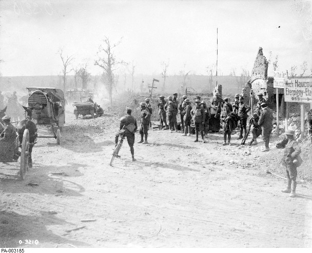 It was now the lot of the 1st and 4th Canadian Divisions in the center, with English troops on either flank, to break the position upon which the German staff hoped more than anything else would halt our successful and unceasing blows. The more important and difficult point of the attack, astride the Arras-Cambrai Road, was assigned to the Canadian troops.